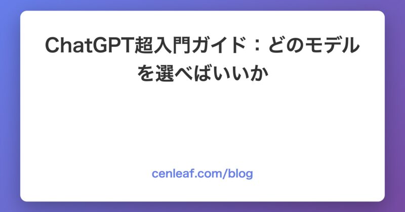 🤖 ChatGPT超入門ガイド:どのモデルを選べばいいか、まずはこれだけ!
