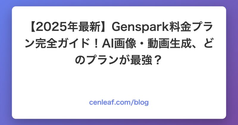 【2025年最新】Genspark料金プラン完全ガイド!AI画像・動画生成、どのプランが最強?