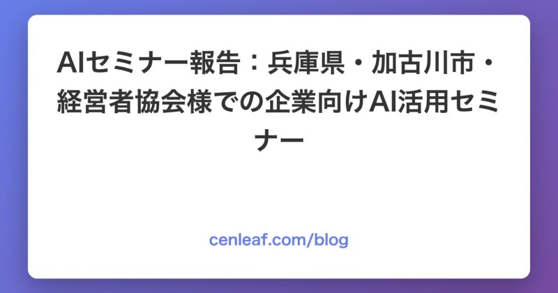AIセミナー報告:兵庫県・加古川市・経営者協会様での企業向けAI活用セミナー