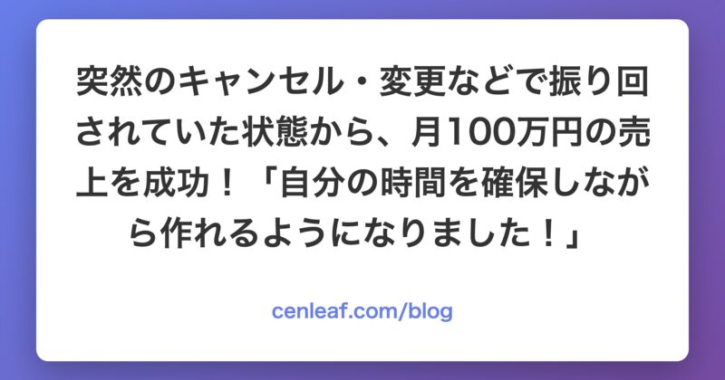 突然のキャンセル・変更などで振り回されていた状態から、月100万円の売上を成功!「自分の時間を確保しながら作れるようになりました!」