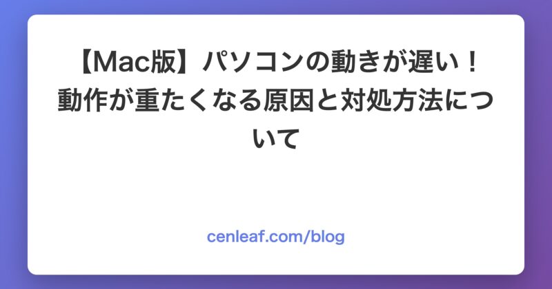 今日はMacBookをお使いの方に向けて「パソコンの動作が重い!原因と改善するための対処方法」についてお伝えします。