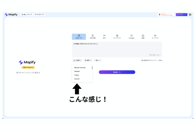 - プロンプト入力:簡単なテキスト入力でアイデアや計画を整理するためのマインドマップを生成します。