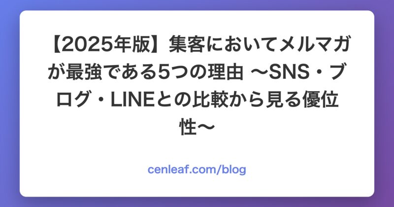 本記事では、集客においてなぜメルマガが今なお強力なツールであり続けているのか、SNS・ブログ・LINEとの比較を交えながら解説します。さらに、メルマガを活用した効果的な集客戦略についても詳しく紹介します。