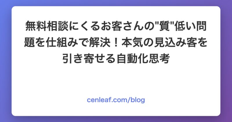 無料相談は、やり方次第で強力なリード獲得チャネルになります。しかし、何の戦略もなしに「無料だから来てね」では、貴重な時間を浪費するだけの「非効率」な活動になりかねません。