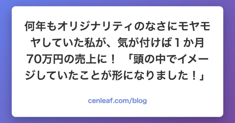 何年もオリジナリティのなさにモヤモヤしていた私が、気が付けば1か月70万円の売上に!