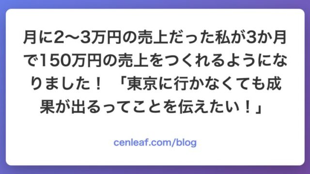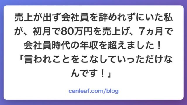 事例・ケーススタディ 売上が出ず会社員を辞めれずにいた私が、初月で80万円を売上げ、7ヵ月で会社員時代の年収を超えました! 「言われことをこなしていっただけなんです!」 2025年12月11日 suzaki