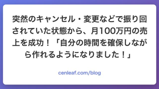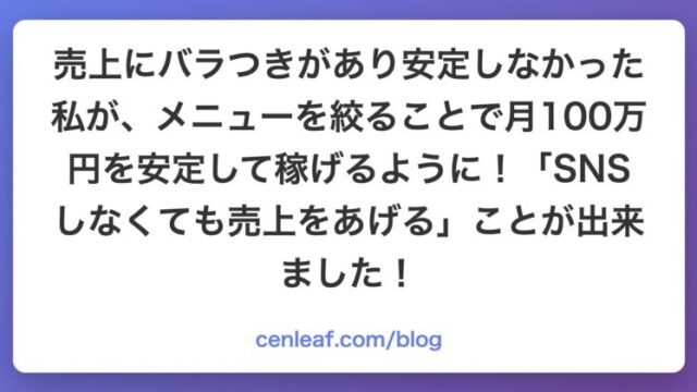 事例・ケーススタディ 売上にバラつきがあり安定しなかった私が、メニューを絞ることで月100万円を安定して稼げるように!「SNSしなくても売上をあげる」ことが出来ました! 2025年12月11日 suzaki