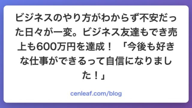 事例・ケーススタディ ビジネスのやり方がわからず不安だった日々が一変。ビジネス友達もでき売上も600万円を達成! 「今後も好きな仕事ができるって自信になりました!」 2025年12月11日 suzaki