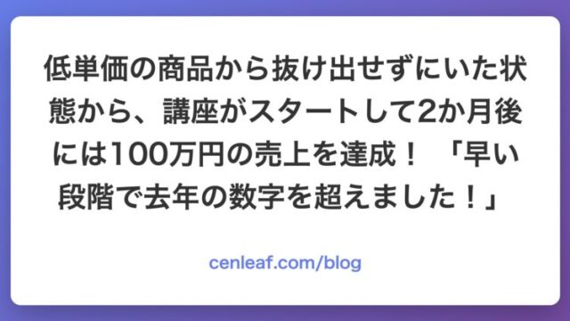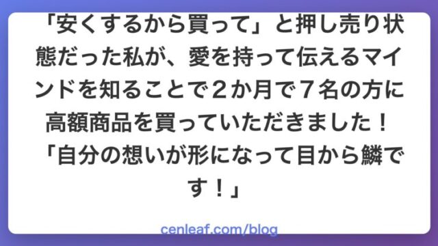 事例・ケーススタディ 「安くするから買って」と押し売り状態だった私が、愛を持って伝えるマインドを知ることで2か月で7名の方に高額商品を買っていただきました! 「自分の想いが形になって目から鱗です!」 2025年12月11日 suzaki