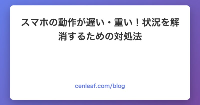 今日は、「スマホの動作が遅い・重い!状況を解消するための対処法」について解説していきます。