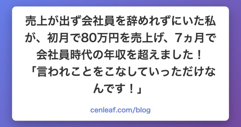 売上が出ず会社員を辞めれずにいた私が、初月で80万円を売上げ、7ヵ月で会社員時代の年収を超えました! 「言われことをこなしていっただけなんです!」