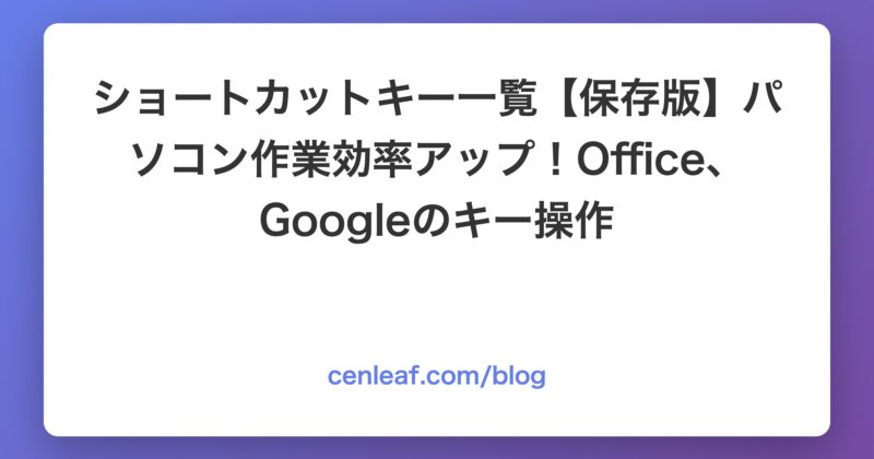 Word、Excel、PowerPoint、Chrome、Gmail、Googleカレンダーを業務で使うときに役立つショートカットキーを掲載しています。
