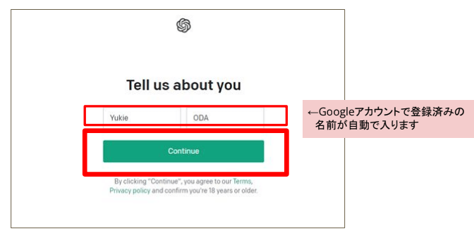Googleアカウントで登録済みの名前が自動で入ります