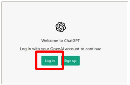 ログイン https://chat.openai.com/auth/login にアクセスし、「Log in」をクリック