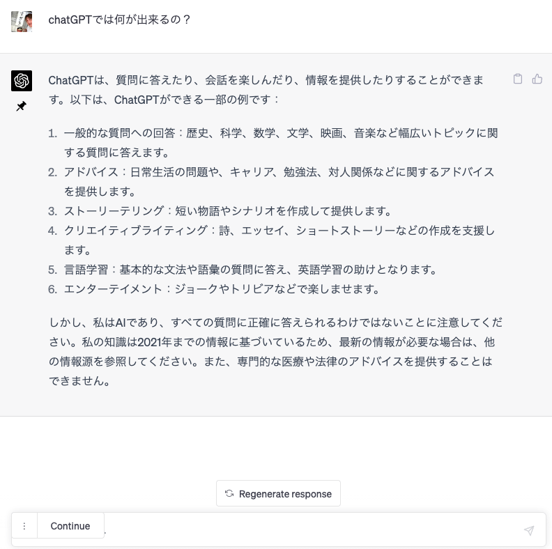 ChatGPTに「ChatGPTでは、何が出来るの?」を聞いてみました