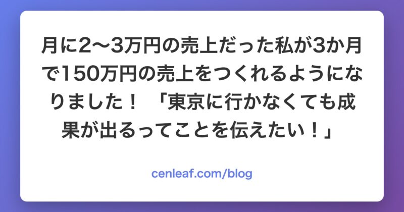 月に2~3万円の売上だった私が3か月で150万円の売上をつくれるようになりました! 「東京に行かなくても成果が出るってことを伝えたい!」