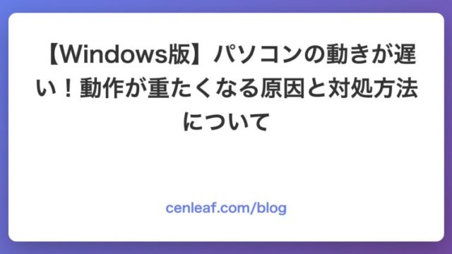 今日は WindowsのPCをお使いの方向けに「パソコンの動作が重い!原因と改善するための対処方法」についてお伝えします。