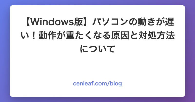 今日は WindowsのPCをお使いの方向けに「パソコンの動作が重い!原因と改善するための対処方法」についてお伝えします。