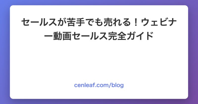 セールスが苦手でも売れる!ウェビナー動画セールス完全ガイド
