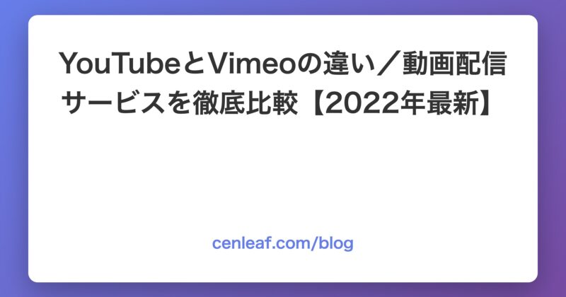 YouTubeとVimeoの違い/動画配信サービスを徹底比較【2022年最新】
