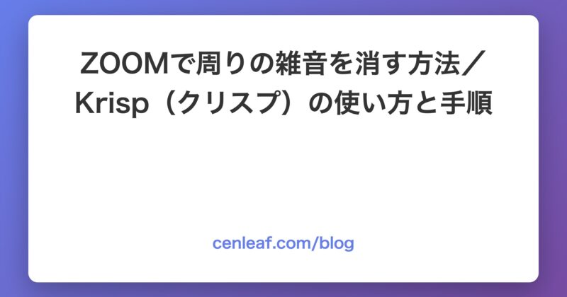 今日は「ZOOMで周りの雑音を消す方法/Krisp(クリスプ)の使い方と手順」について解説していきます。