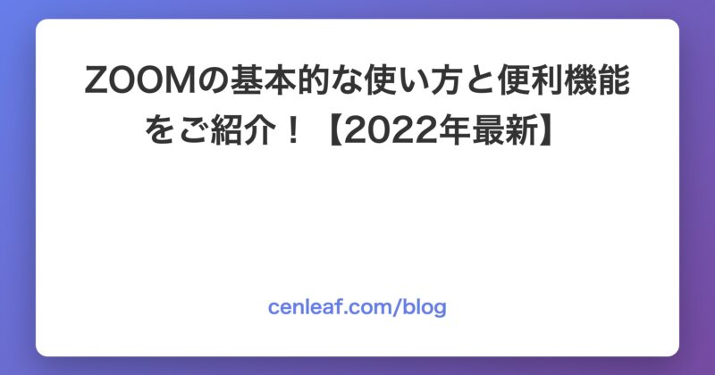 今日は、ZOOMの基本的な使い方と便利機能【2022年最新】をご紹介していきます。